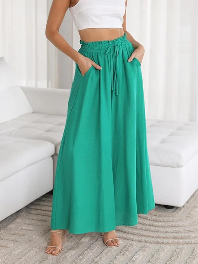???【Features】Women's beach long trousers are designed with high waist pleated trouser belt, elastic and stretchy waistband, adjustable drawstring waist, two functional side slant pockets,solid color&printed,loose fit, Super Wide Leg, drapey full-length, Extra Length, especially suitable for tall ladies.