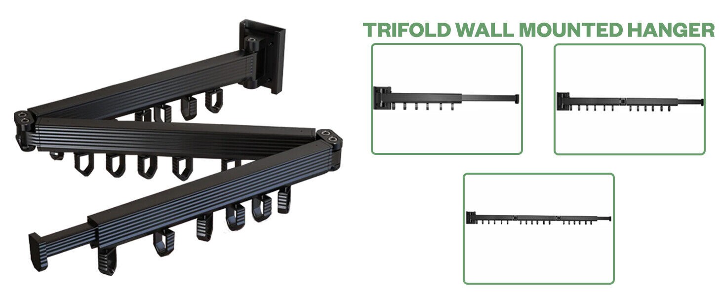 Wall Mounted Clothes Hanger Rack Laundry - Retractable & Collapsible Tri-Fold
