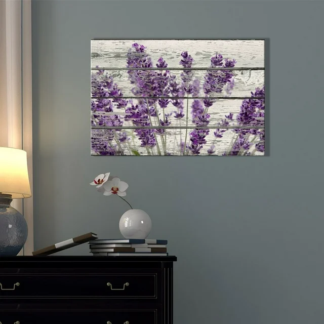 wall26 Canvas Print Wall Art Bouquet of Lavender Flowers on Wood Panels Floral Flower Photography Modern Art Rustic Scenic Relax/Calm Multicolor for Living Room, Bedroom, Office - 24"x36"