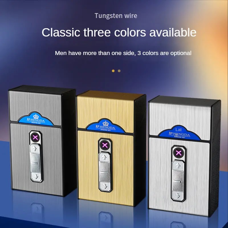 Waterproof Metal Cigarette Case with Double Arc Electronic Lighter and USB Charging
