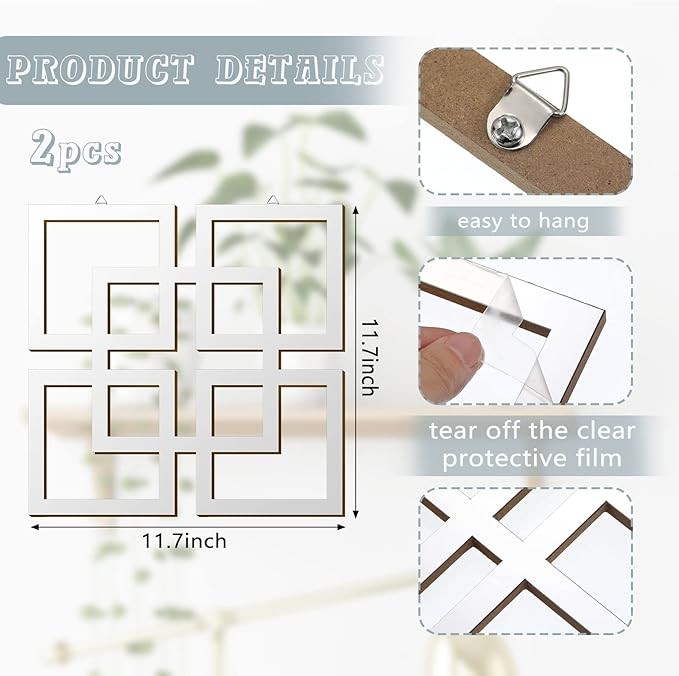 Weysat Wall Mount Home Mirror, 2 Pieces Silver Square Decorative Mirror for Bedroom, Living Room, Bathroom, 11.8 x 11.8 inches