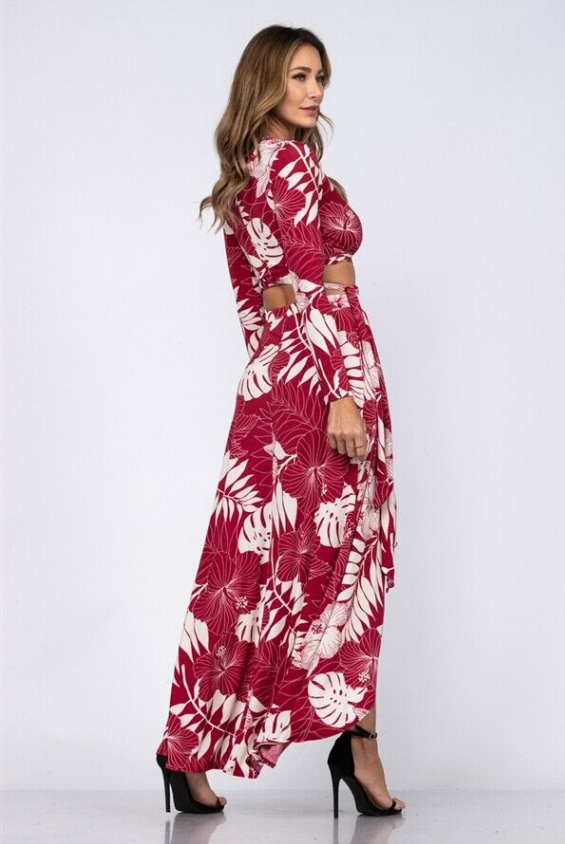 Wine Red 2pc Crop Top and Maxi Skirt Set