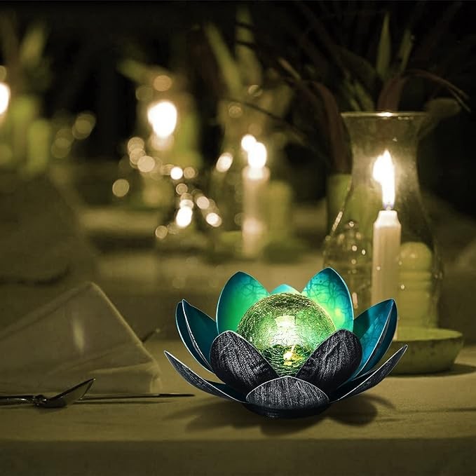 WNP Solar Lotus Flower Light Outdoor Decorations,Solar Outdoor Lights Decorative,Waterproof Glass Solar Powered Ball Decor Light for Outside with Metal Petal for Tabletop,Walkway Yard