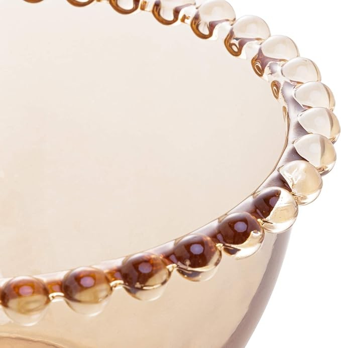 WOLFF - Pearl Beaded Crystal Dessert Bowls Set of 4 - Candy Bowls, Ice Cream, Popcorn and Cereal Serveware Set - Luxury Glassware, Hosting Adornments, Dinner and Tableware Accessories -Amber,15" each