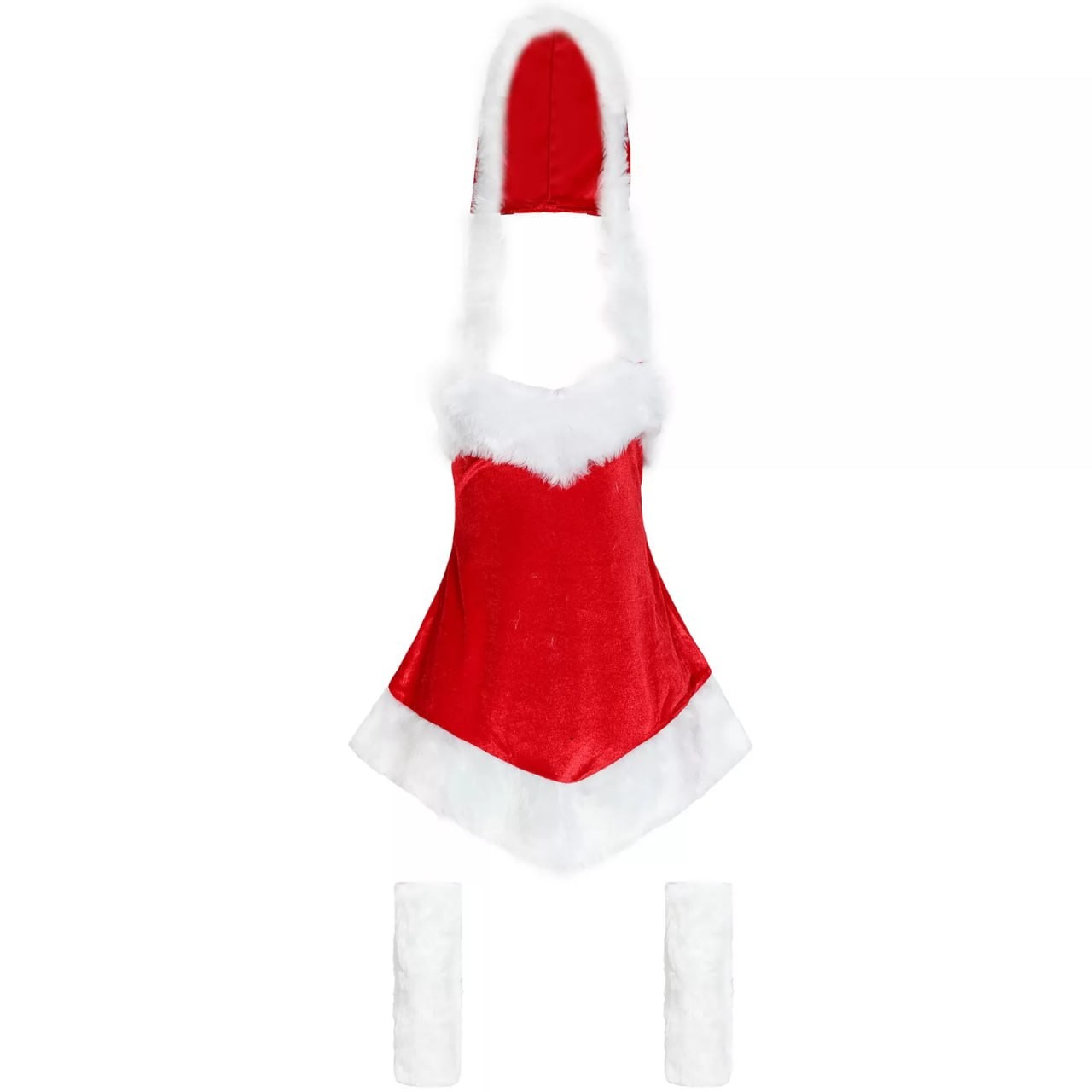 Includes: Christmas hat, Christmas skirt, foot covers
