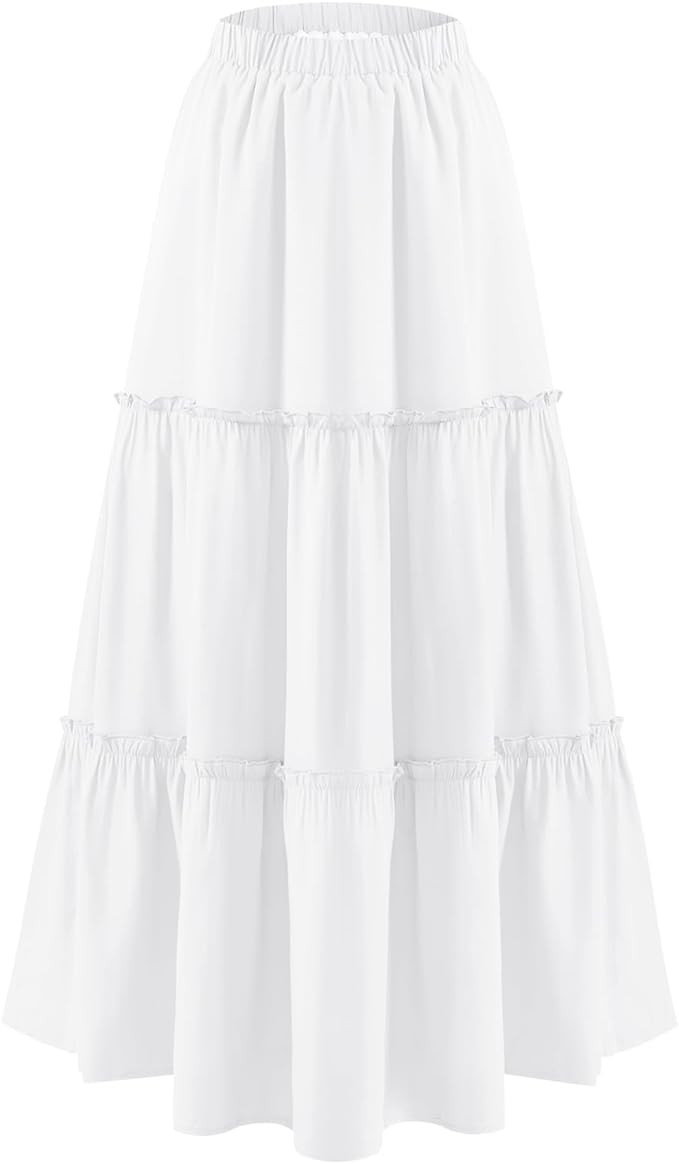 • Stylish Design: This classic solid color long maxi skirt is simple but fashion. A-line, ruffle layered, stretchy high waist, bohemian style, floor length, easy dress up or down. No matter what body type you are, this must-have skirt is a good choice for your summer day.