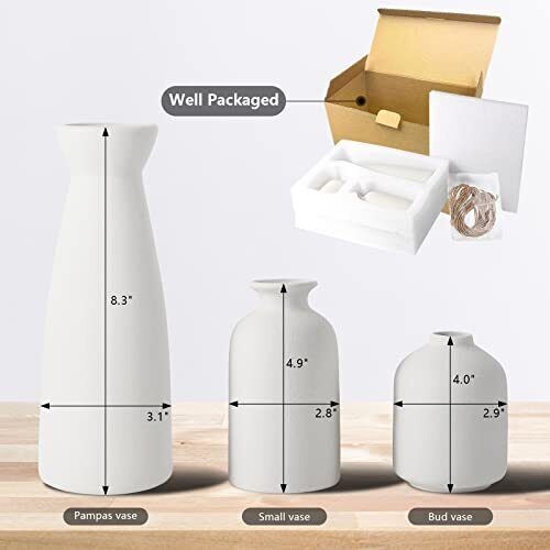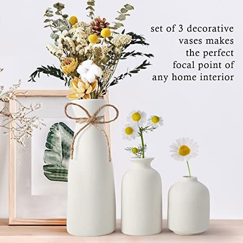 YEENAASY Ceramic vase Set of 3 Small Flower Vases for Rustic Home Decor Moder...